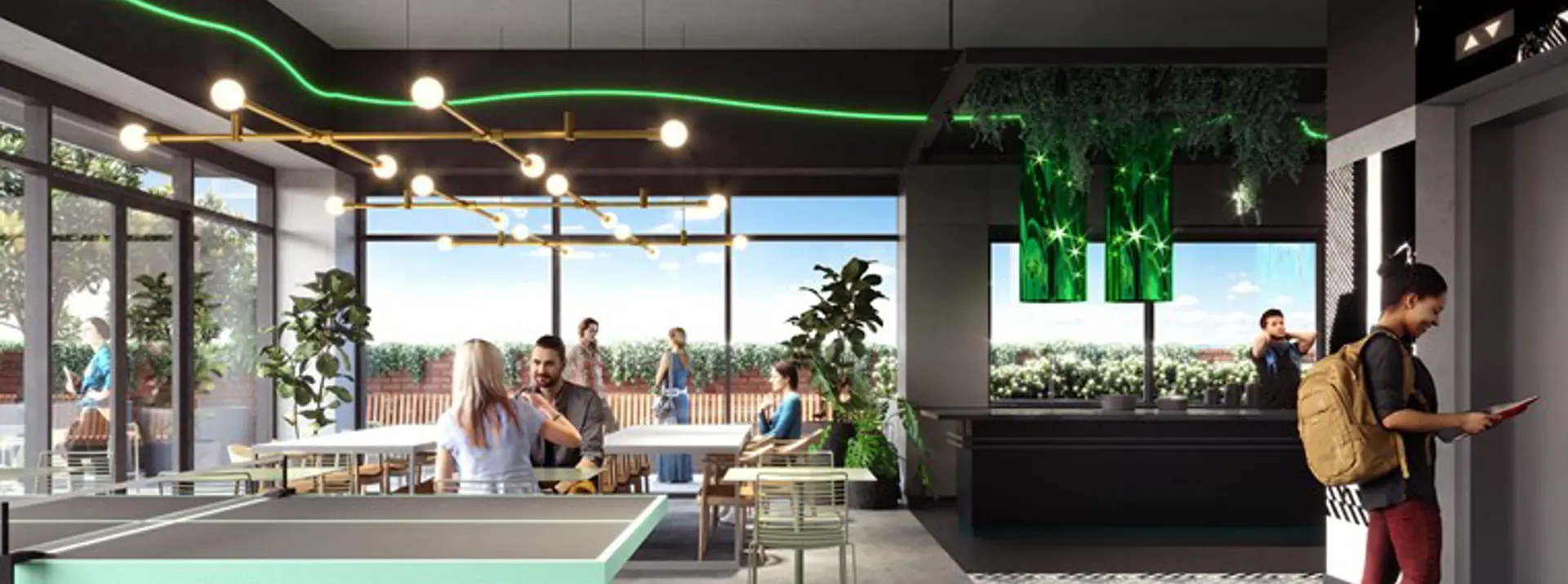- Rooftop bars and lounges, community gardens, and kitchens with convenient, locally sourced food and beverages